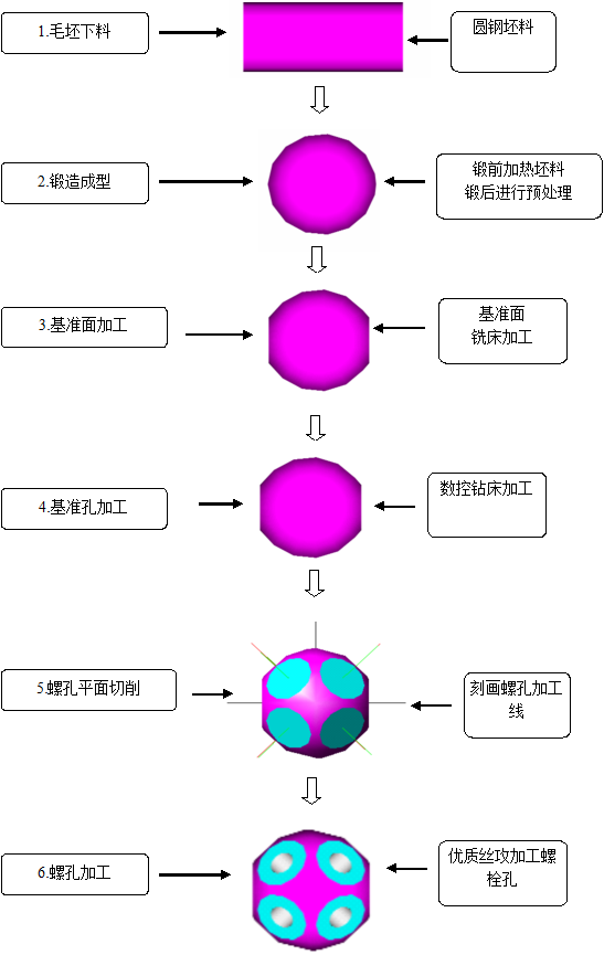 螺栓球加工制作工艺流程图:
